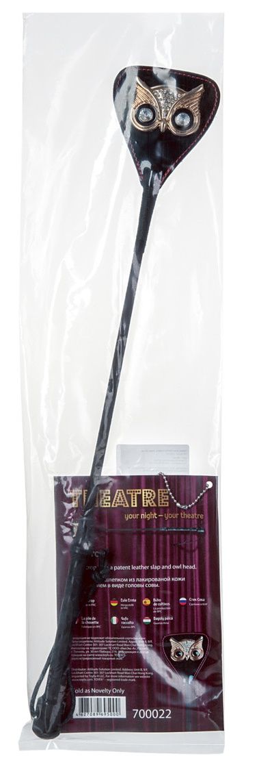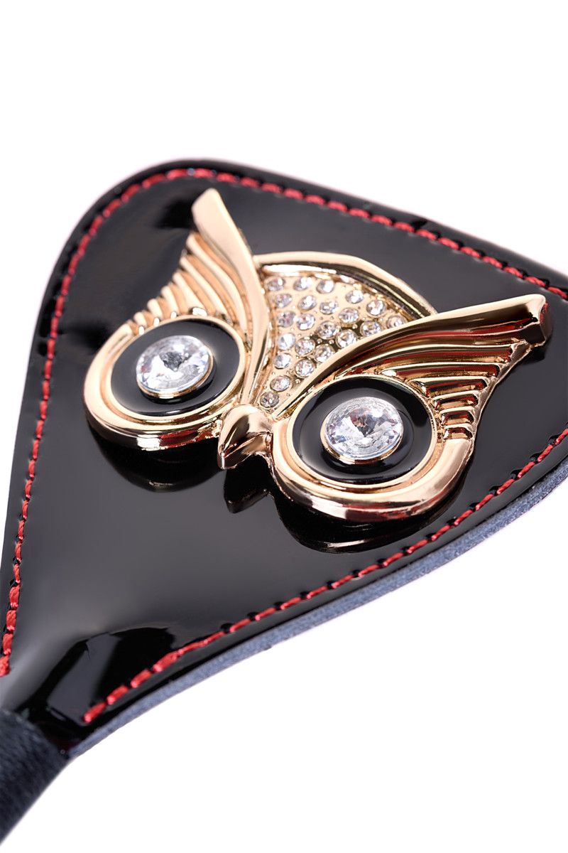 Стек со шлепком из лакированной кожи и украшением в виде головы совы.