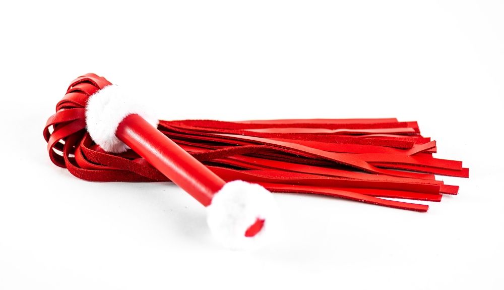 Роскошная плеть из натуральной кожи красного цвета с декором в виде белоснежного меха. Очень красивый и функциональный аксессуар! Длина ручки - 17 см.